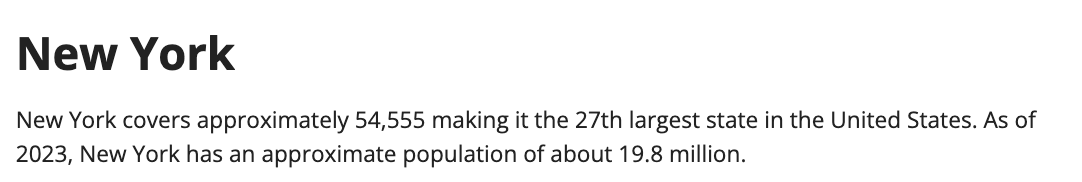 {{< meta state >}} covers approximately {{< meta square-miles >}} making it the {{< meta size-rank >}} largest state in the United States. As of 2023, {{< meta state >}} has an approximate population of about {{< meta population >}}.