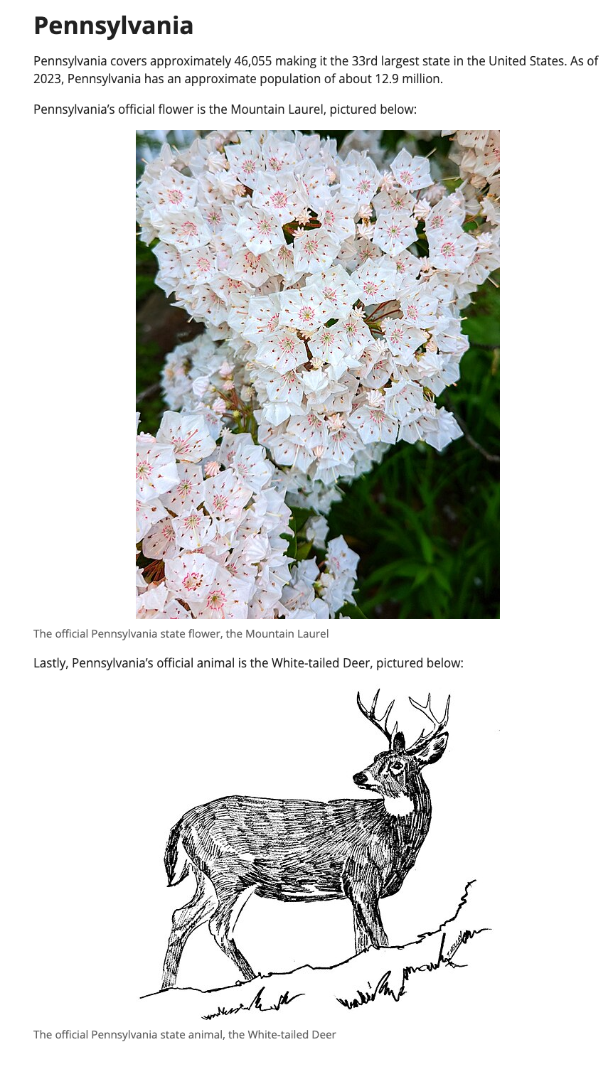 But, I would also like to add the state’s flower and animal with images of each. You can achieve this by editing the document to add this information and images: